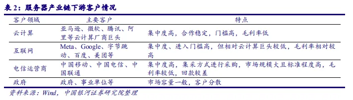 从产业链下游来看,中国服务器市场需求集中在互联网(包括云计算)、政府、电信运营商等领域,其中互联网行业是服务器最主要的采购方,在整体需求中的占比超30%。
