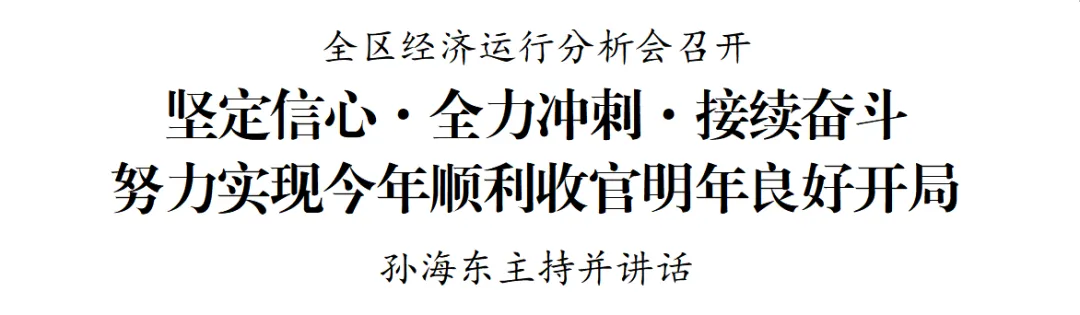 会议强调,要打好全年收官“冲刺战”。强化责任意识、交账意识,慎终如始抓好全年工作落实,紧盯核心指标加强监测分析,立足存量挖潜增效,聚焦增量提质扩面,逐项梳理进度、补短强弱,全力推动各项指标应统尽统、颗粒归仓,以最大努力争取最好结果。要打好明年开局“主动战”。锚定“达超全市平均,争取多作贡献”全面发力,密切跟踪宏观经济形势和政策导向,科学设定目标、细化任务分解,积极培育“四上”企业,着力壮大实体经济,确保实现“开门红”,更好稳定市场信心、提振社会预期、带动全年走势。要打好安全稳定“保卫战”。加强组织领导,严格领导干部带班和关键岗位24小时值班制度,切实抓好安全生产、公共安全、社会稳定各项工作。针对风景名胜区、商业综合体、跨年活动现场等人流聚集区域,统筹部署保障力量,确保人民群众度过一个平安祥和的节日。