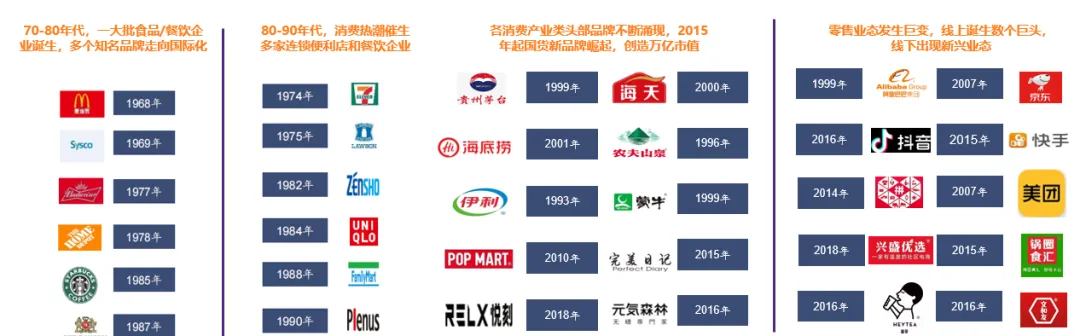 根据国际经验,人均GDP超过1万美元后,会快速拉动当地消费市场的规模,例如:70年代末美国人均GDP超过1万美元,消费市场的快速发展,麦当劳、星巴克与Sysco等公司快速崛起;80年代初日本人均GDP超过1万美元,消费市场的快速发展,同样推动了711、罗森与优衣库等公司的快速崛起。