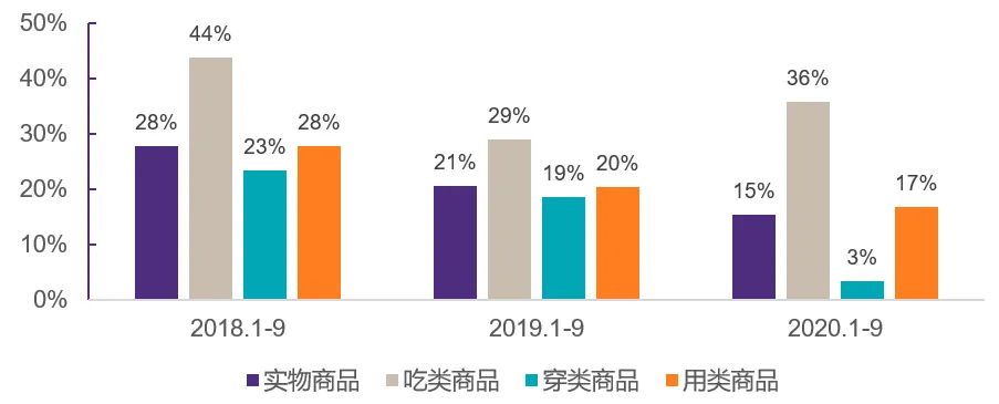 疫情改变了消费者的长期消费习惯,这对于快消市场的竞争格局变化起到了重要的推动作用。疫情期间,在传统零售业务遭受巨大打击的同时,线上零售业务依然保持高速增长。食品类板块成为线上业务的引流热点,较2019年同期增长36%。