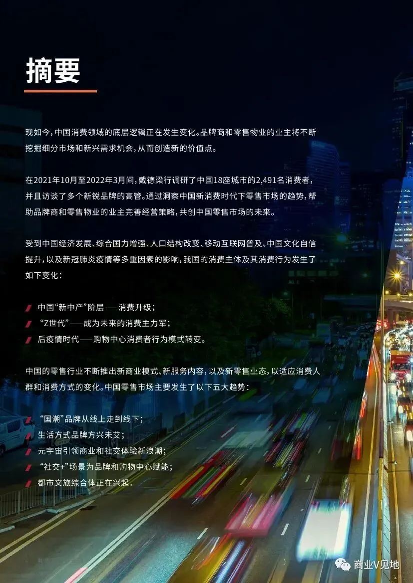 在2021年10月至2022年3月间,戴德梁行调研了中国18座城市的2,491名消费者, 并且访谈了多个新锐品牌的高管。通过洞察中国新消费时代下零售市场的趋势,帮助品牌商和零售物业的业主完善经营策略,共创中国零售市场的未来。