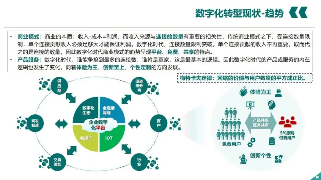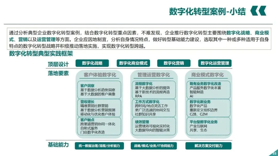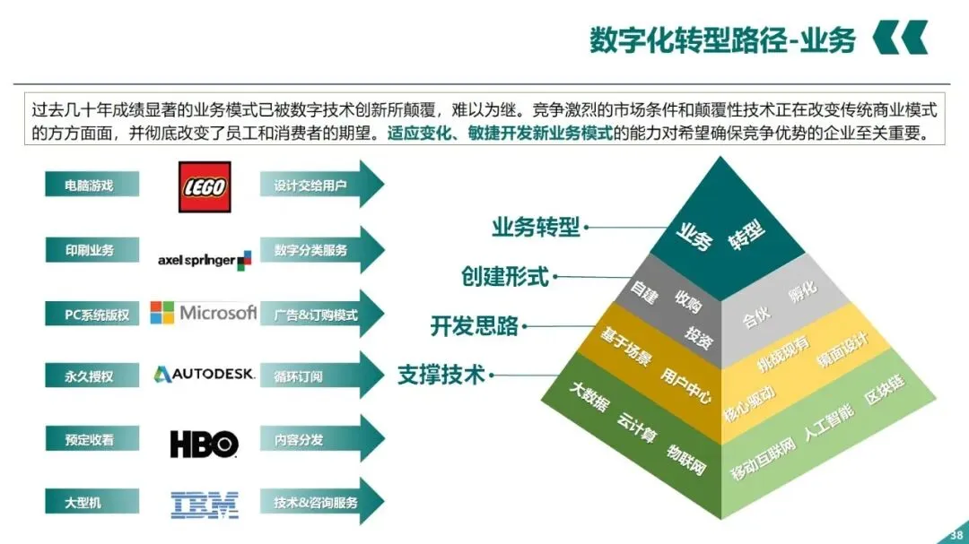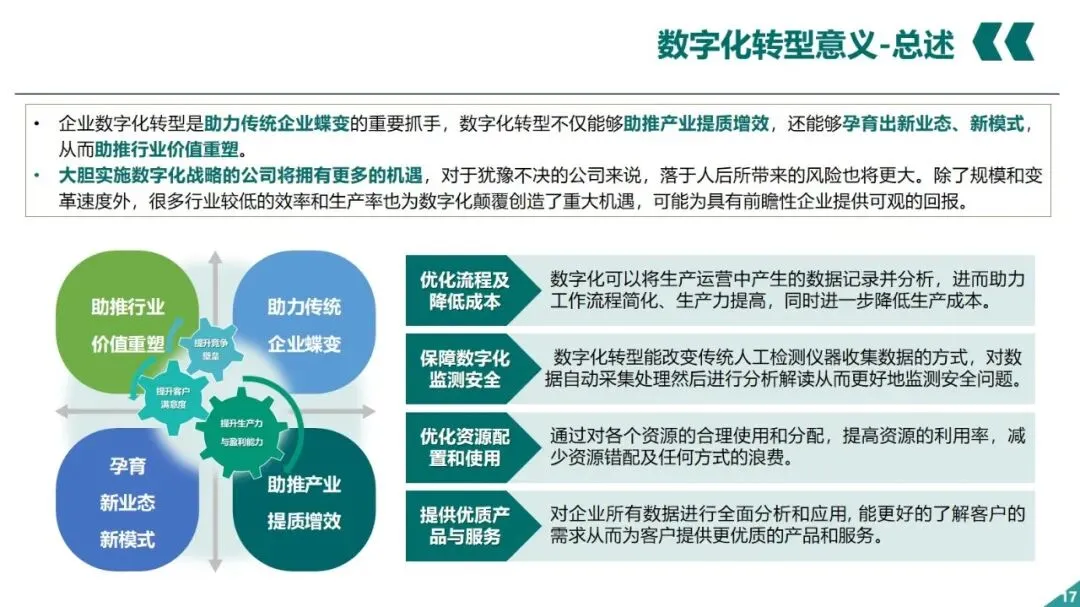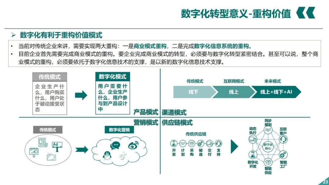 对企业来说,转型的价值很实在:对内能简化工作流程、降低生产成本,靠数据支撑做出更科学的决策,让管理更精细;对外能更准确摸清客户需求,提供更对味的产品和服务,提升客户的满意度和忠诚度。更重要的是,转型能催生出新的业务形态,帮助企业在激烈竞争中构建独特优势,甚至带动整个行业的价值重塑。