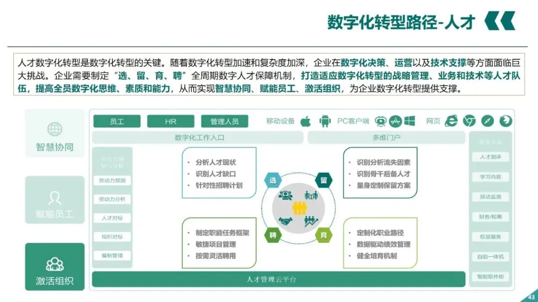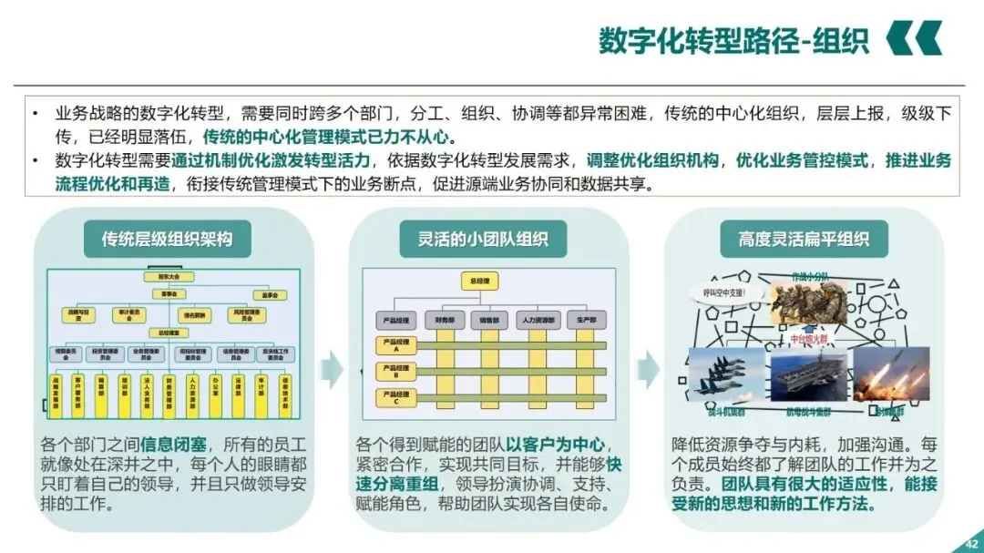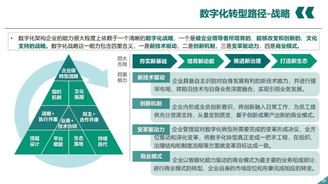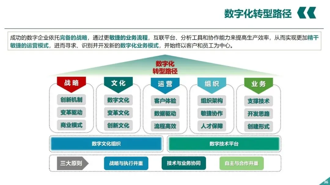 想要转型成功,得找对方法:首先要有明确的战略,老板亲自牵头,让技术和业务紧密配合;把数据当成核心资产,搭建数字化平台;调整组织架构,让团队更灵活高效;还要培养和留住数字化人才,在公司里养成用数据说话、勇于创新的文化。企业转型不能盲目跟风,要根据自身情况选适合的路径,才能在数字经济的浪潮中站稳脚跟、持续发展。