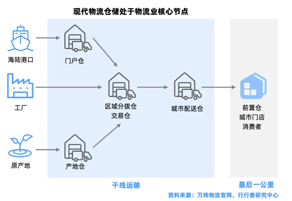 海陆港口工厂原产地前置仓城市门店消费者城市配送仓产地仓门户仓区域分拨仓交易仓干线运输最后一公里现代物流仓储处于物流业核心节点。