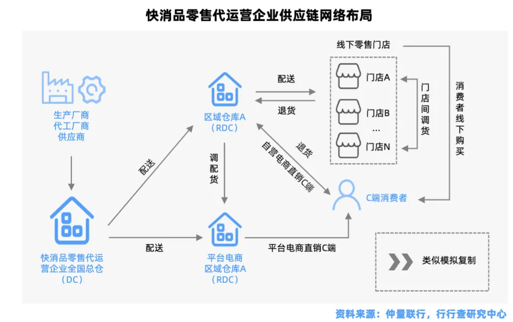 商品通常需经多次运输才能由产地运送至消费终端,在各环节中均需要实体的空间进行存放,期间会对各种不同用途的仓储物流设施产生需求。