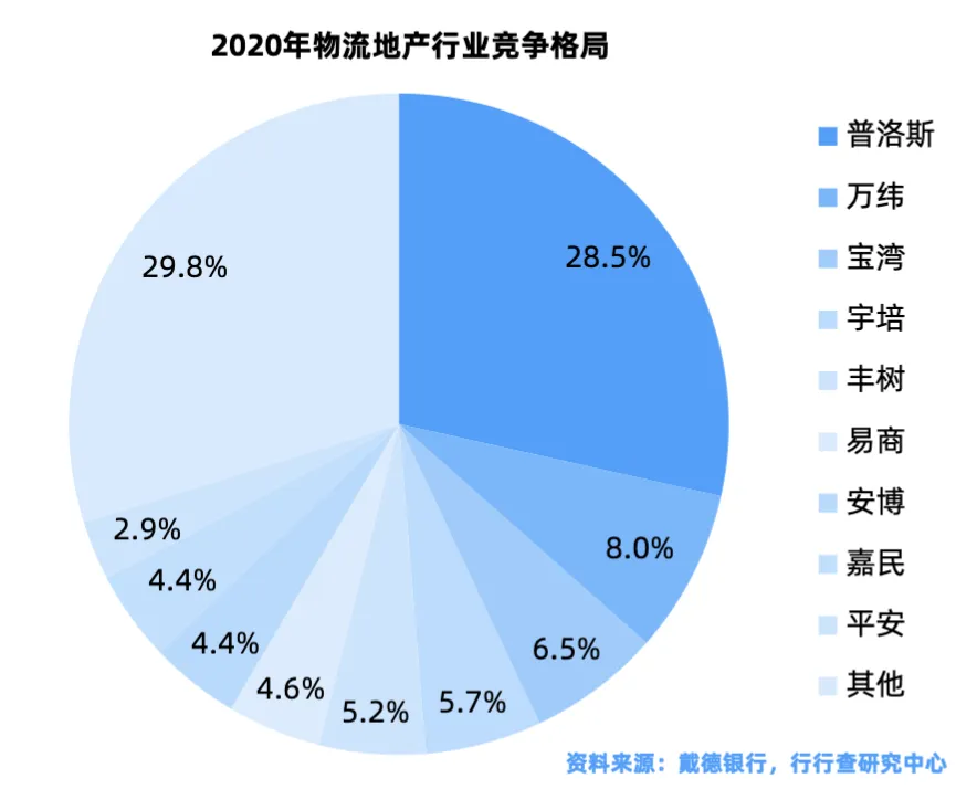 根据国际房地产顾问“五大行”之一的戴德梁行数据统计,2020年普洛斯存量物流仓储面积市占率28.5%,占据行业主导。