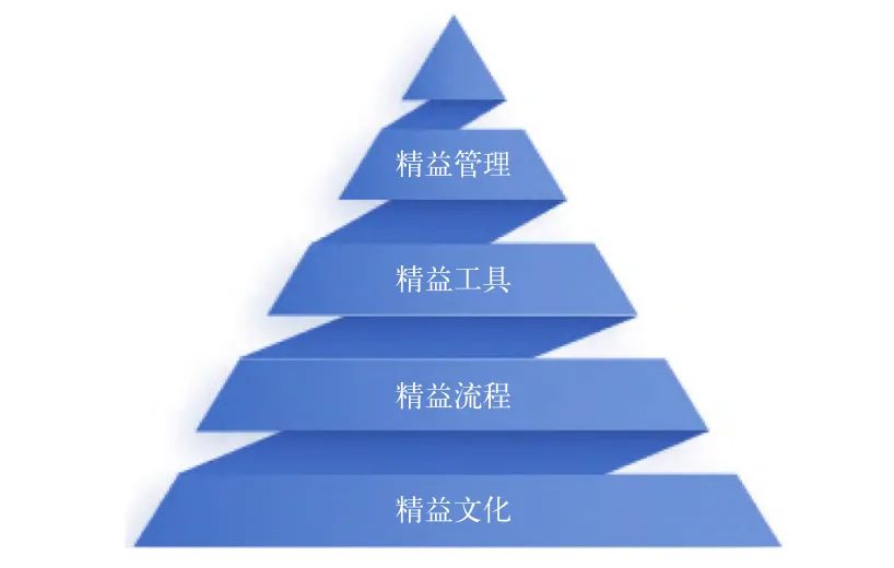 精益变革管理体系的构建需要基于精益管理金字塔思想,从精益文化、精益流程、精益工具和精益管理四个层级实现精益管理思想的融入:①精益文化需要企业从危机意识、人本思想、创新精神和持续改进等方面来贯彻精益思想;②精益流程需要在流程设计、全员参与、识别浪费等方面不断优化,提高效率;③精益工具需要将5S管理、价值流分析、看板管理等精益工具在各业务(不仅仅在生产业务)中运用起来;④精益管理即在精益文化、精益流程、精益工具的基础上,对企业管理模式进行革新,让生产力各个要素的能量充分释放和奔涌起来,增强企业核心竞争力,从而能够避免精益“夭折”。