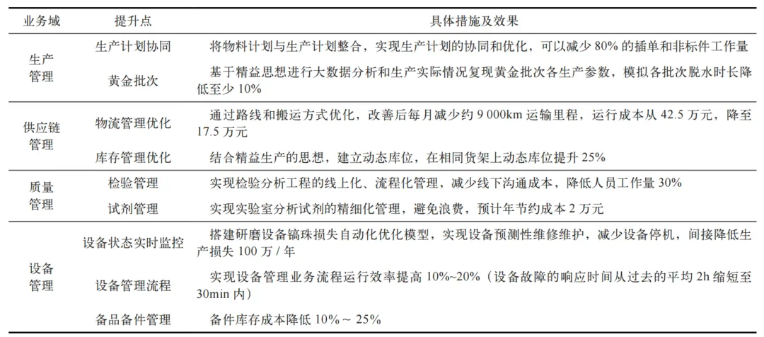 表1 数字精益生产体系架构应用效果