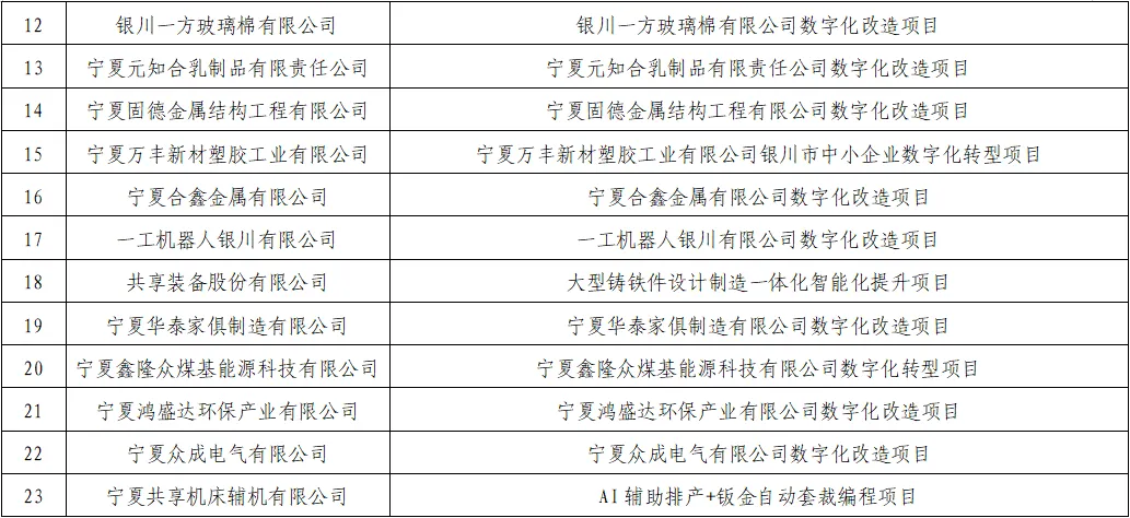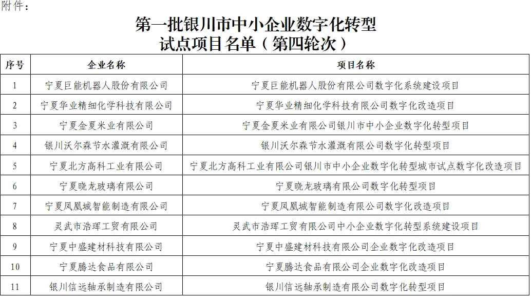 附件:第一批银川市中小企业数字化转型试点项目名单(第四轮次)