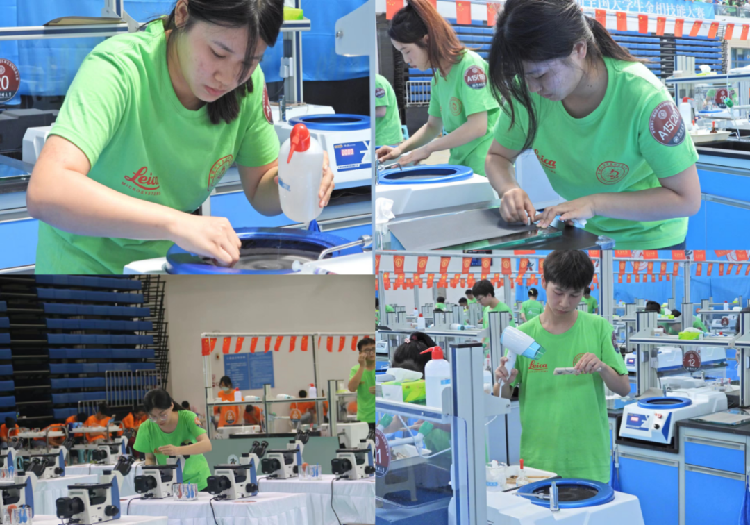 我校参赛选手经过长达半年的刻苦训练,不断提升自身的操作技能和竞技水平,克服实践过程中的各种困难,为参赛做了充分准备。在比赛过程中,全身心投入,一丝不苟、精益求精地完成打磨、抛光、腐蚀等金相试样制备工序的每一个环节,充分展现了机械学子的职业能力和工匠精神。