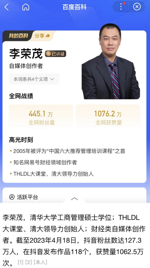 THLDL大课堂(前身是清华大学领导力培训中心)23年专注于培训教育行业,获得了非常不错的口碑。而且THLDL大课堂的创始人李荣茂老师,更是将理论付诸实践的亲身体验者!
