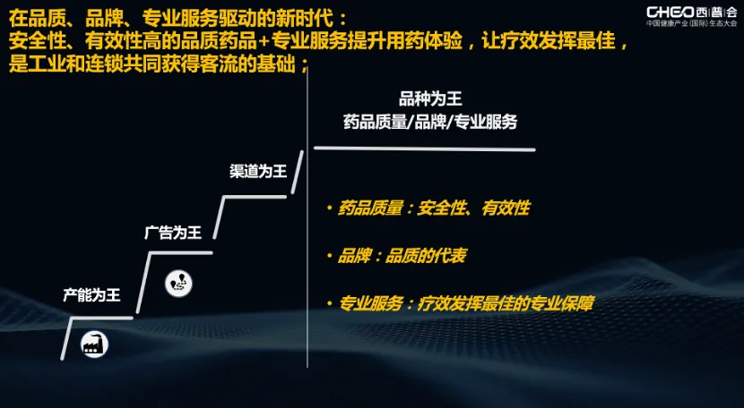 在品质、品牌、专业服务驱动的新时代,药店和头部工业共同努力让患者便捷、专业、全程得到安全性、有效性高的品质药品和服务。
