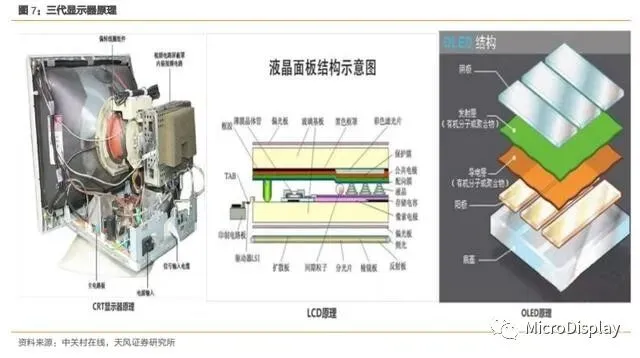 OLED 被称为是继 CRT、LCD 之后的第三代显示技术。与 CRT、LCD 显示器相比,OLED微型显示器具有自发光、功耗低、抗震性强、耐低温、超轻薄、响应速度快等优势,因此呈现出逐步替代的趋势。