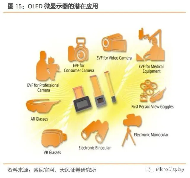 硅基 OLED 产品对应的下游客户主要包括工业测温、测距手持设备制造商;穿戴式视频终端设备制造商;相机制造商;高端医疗器械、工业器械制造商等。硅基 OLED 微型显示器应用范围宽广,未来将逐步取代 LCD 显示,技术成熟时,还可以取代大型显示屏的应用领域。