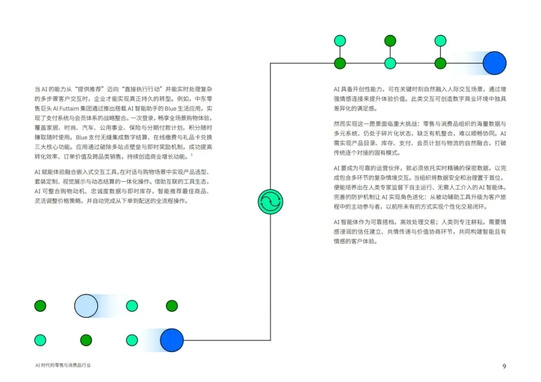 AI的价值正在经历从分析洞察到自主执行的质变。传统AI擅长数据处理,而新一代AI智能体(Agent AI)能直接协调库存、物流、支付和会员系统,完成多步骤复杂交互。