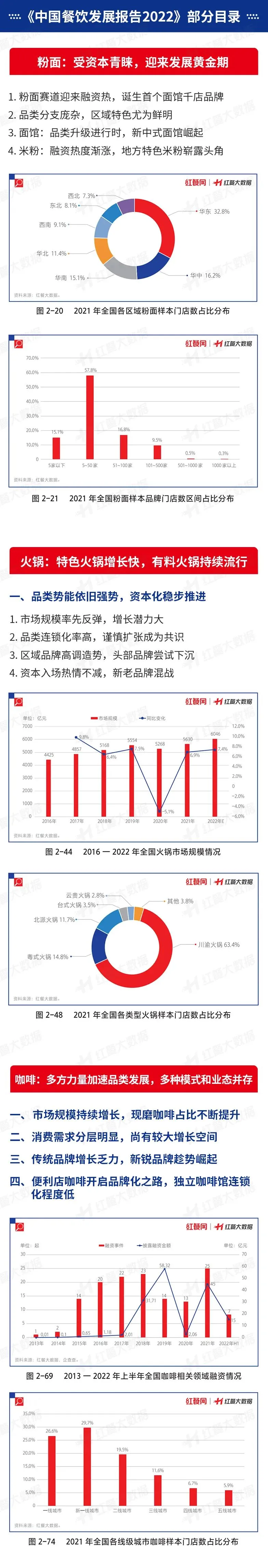 品类发展趋势:我们全面剖析了红餐大数据收录的32000+个餐饮品牌,并对重点品牌进行追踪,依据过去数年积累的餐饮品类数据,对中式正餐、火锅、茶饮、咖啡、烘焙等20余个热门餐饮品类的现状和趋势进行了深入解读。