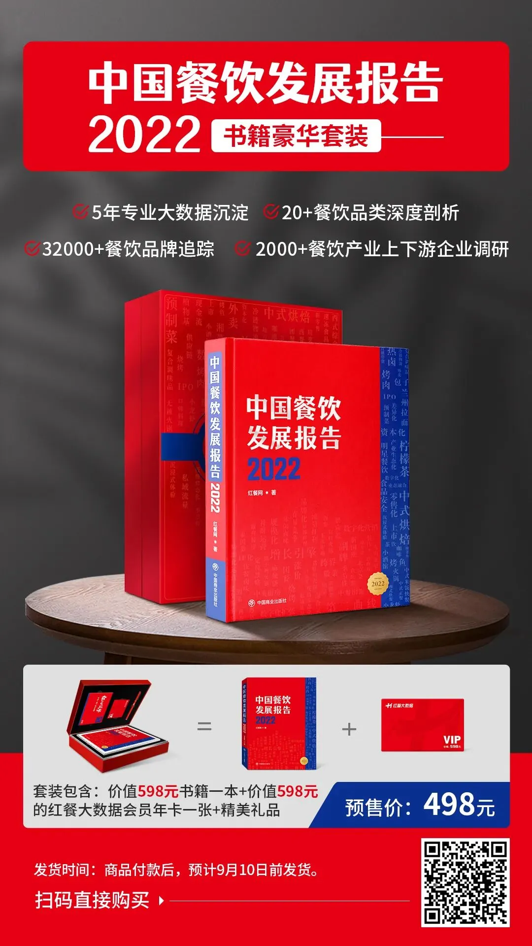 《中国餐饮发展报告2022》即日起开启火热预售,原价598元,早鸟价仅需498元。凡购买本书即赠送价值598元的红餐大数据会员年卡一张。