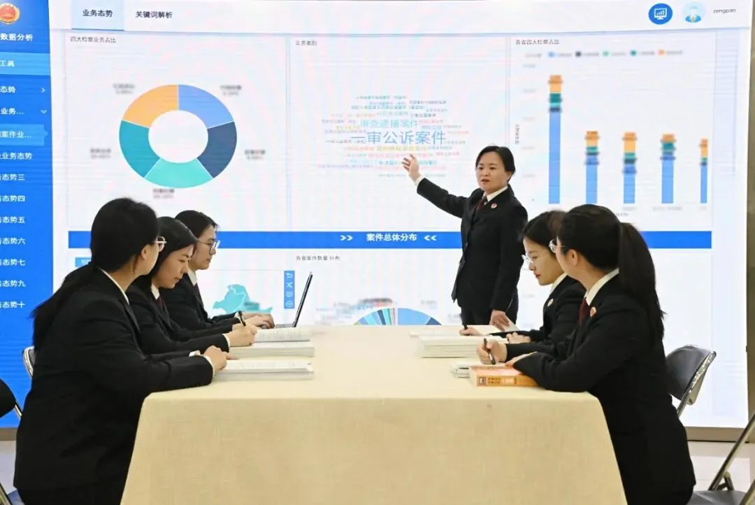 最高检案件管理办公室检察业务数据分析研判团队对2023年全国检察业务数据运行态势进行分析讨论。
