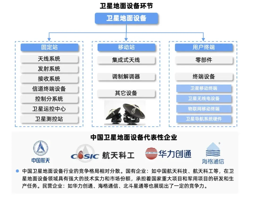 地面设备主要包括固定地面站、移动地面站和用户终端。