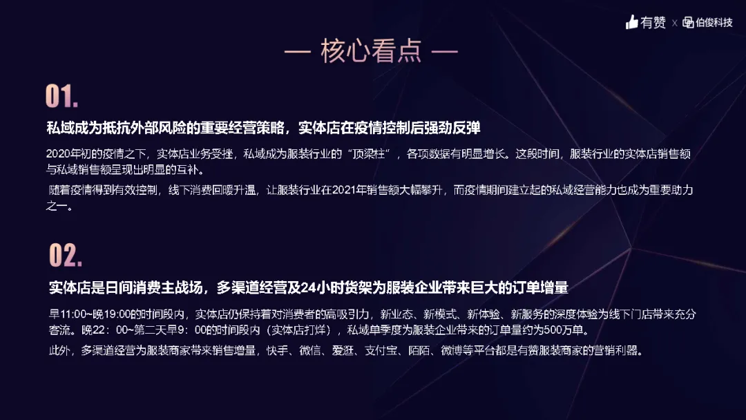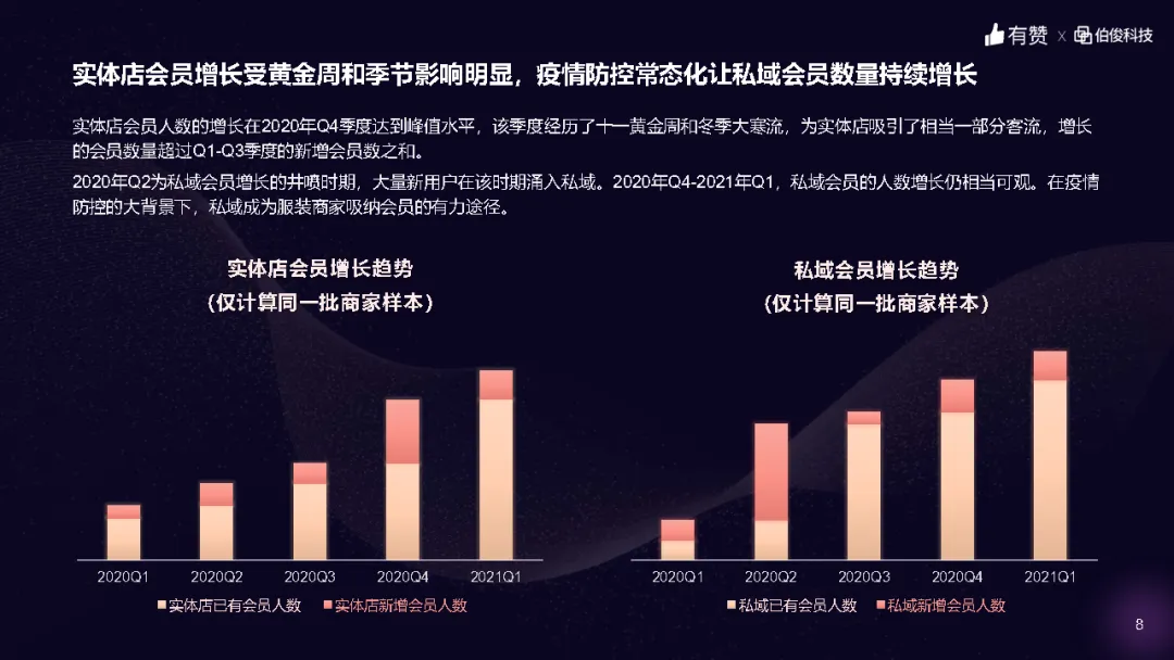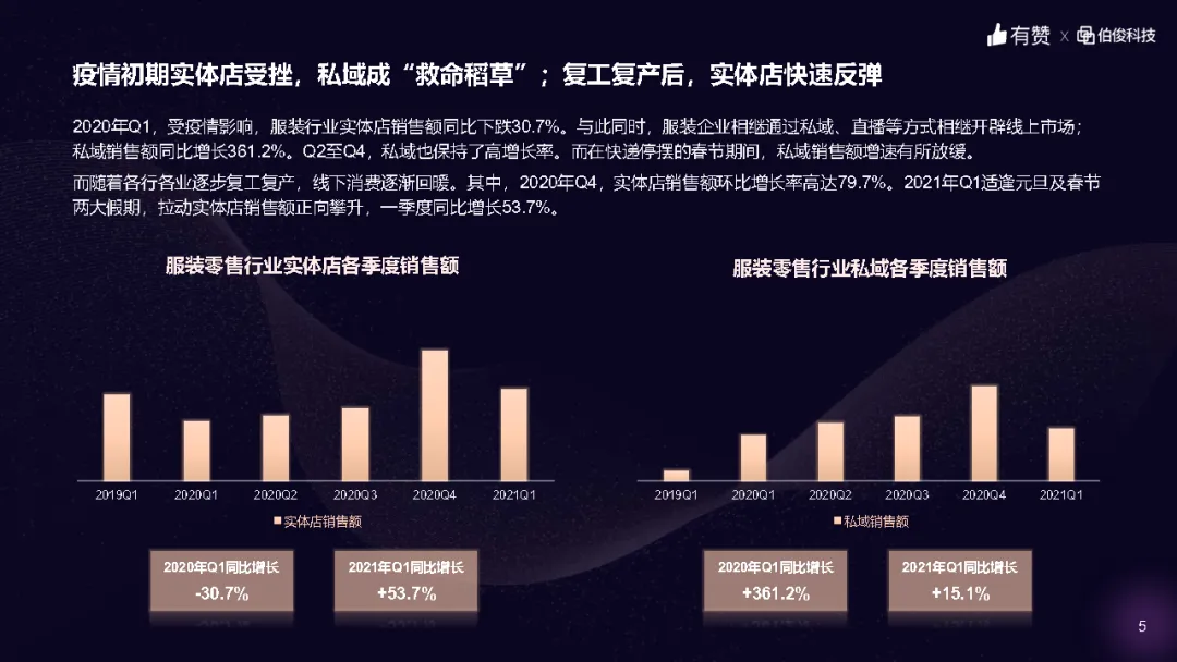 2020对服装实体店消费与私域消费都产生了不容小觑的影响。对于实体店消费而言,影响是短暂的。对于私域销售而言影响更加长远.