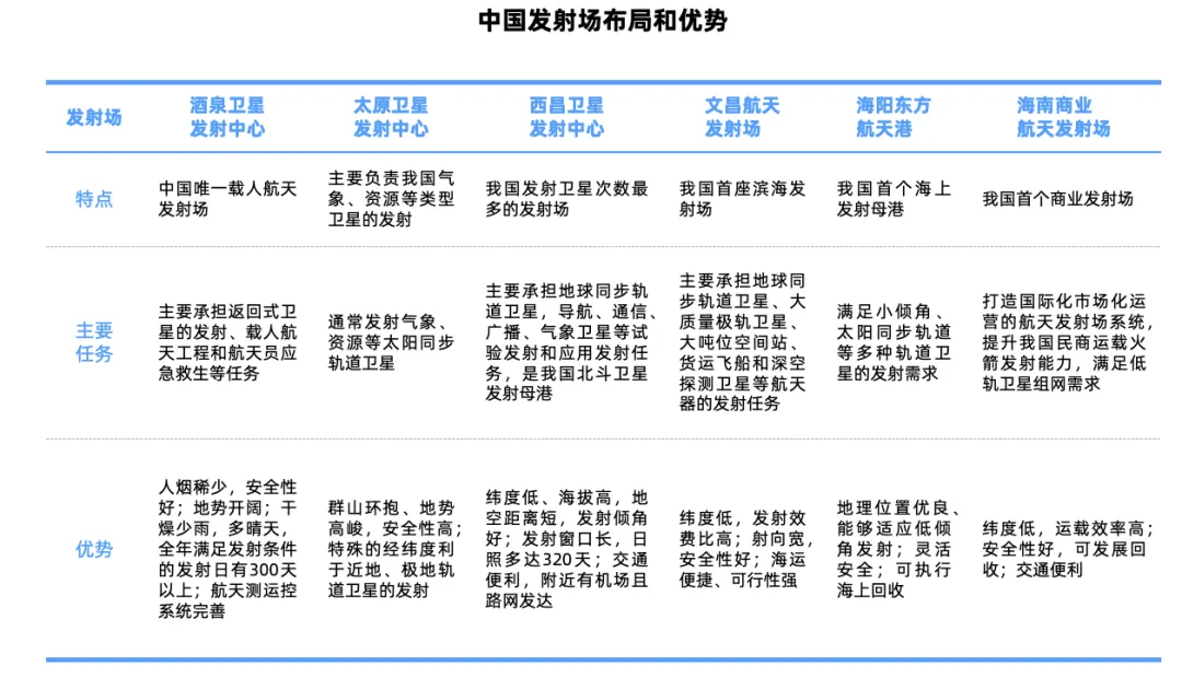 我国主要的商业航天发射场包括海南商业航天发射场、海阳东方航天港(我国首个海上发射母港)、凉山商业航天发射场(规划中)、广东(阳江)航天发射母港(在建)等。