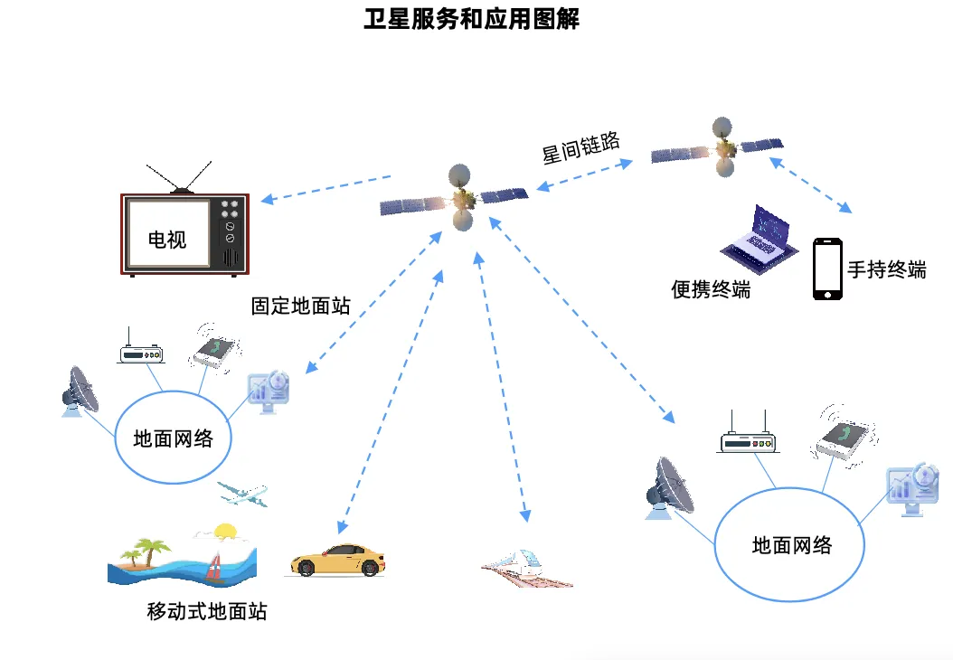 地面站:是整个卫星互联网系统的核心部分,负责发送和接收卫星信号,并对卫星网络进行管理,通常也称为地球站。