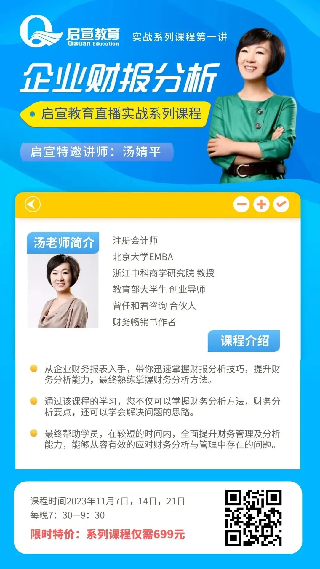 汤婧平老师,《企业财报分析》针对你们公司的经营问题,针对性指导解决!