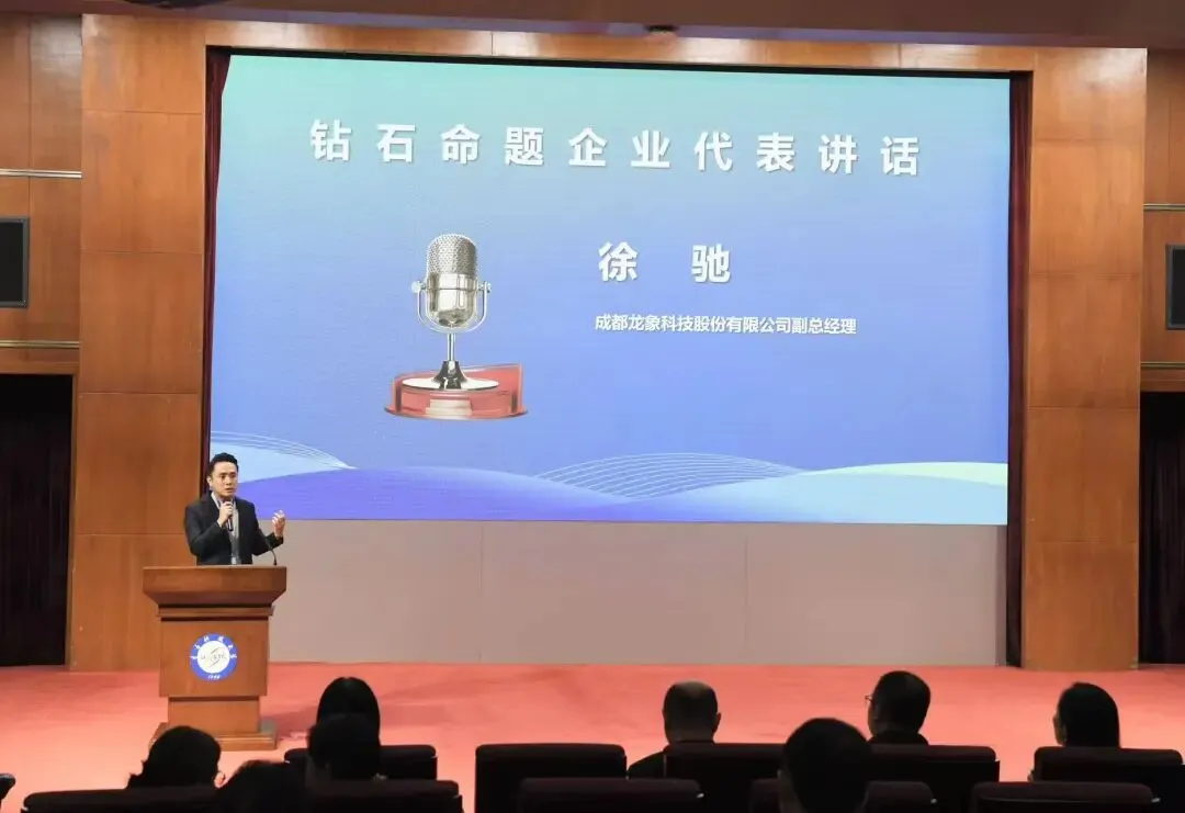 成都龙象科技股份有限公司副总经理徐驰先生代表命题企业发言,徐总代表命题企业感谢主办方提供了联结学界智慧与商业实践的平台,让理论的商业价值能在企业的实际场景中生根落地。企业在数字化时代中,亟需精准的商业分析数据与科学的模型,助力企业破解在经营中传统的思维,找到更新鲜的商业落地方案。