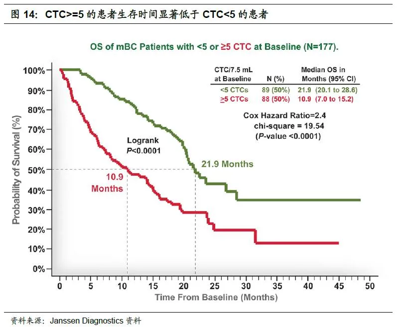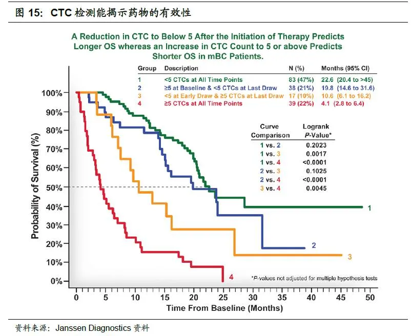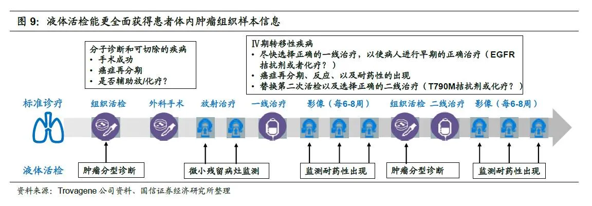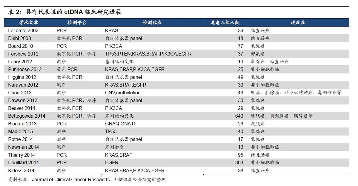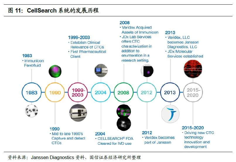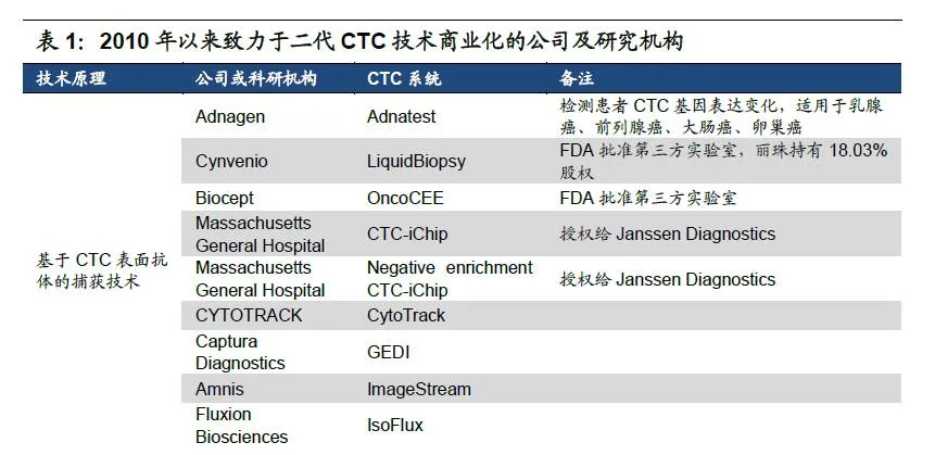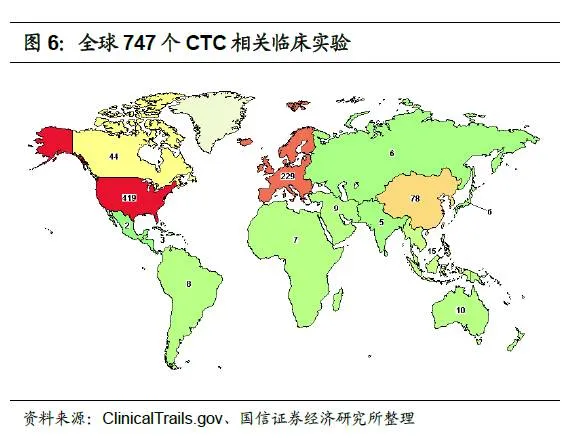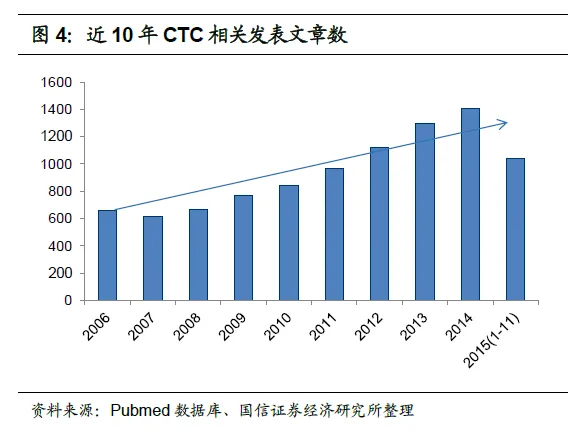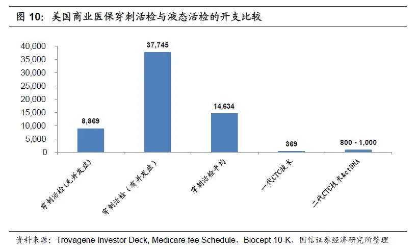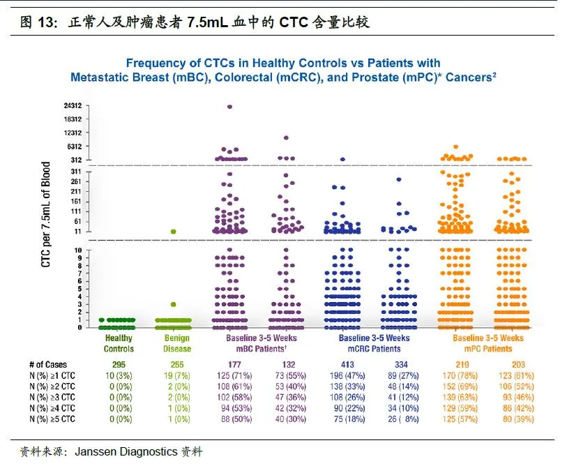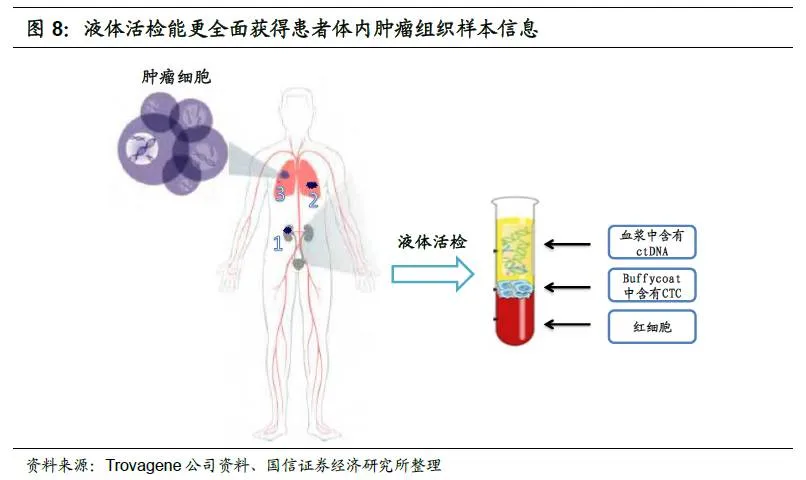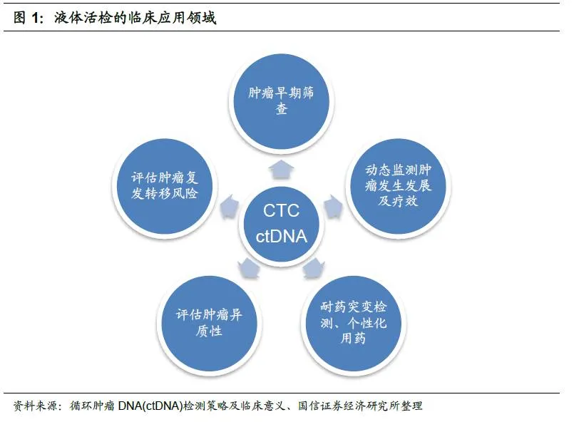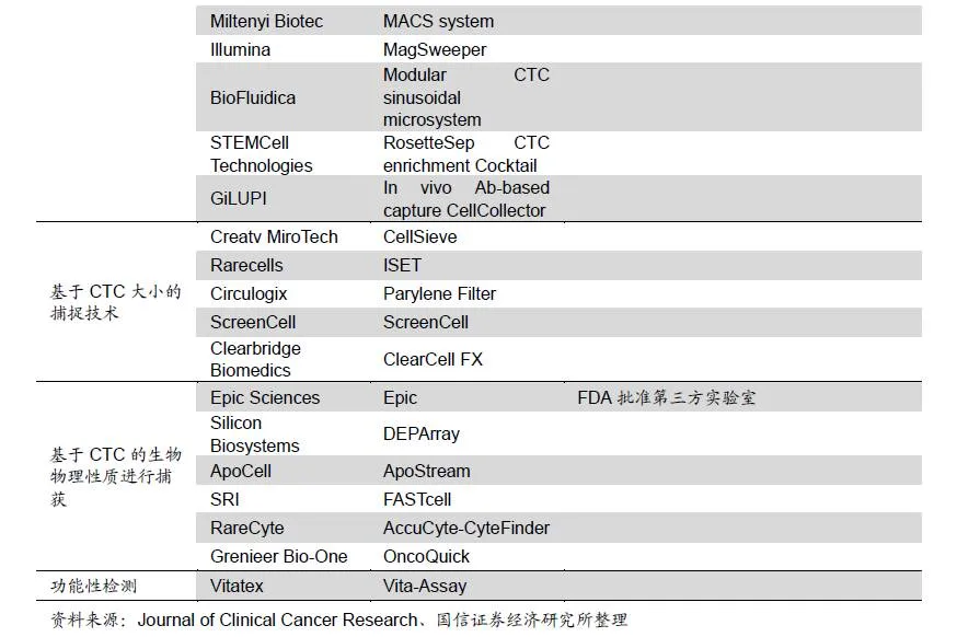 若比较CTC与ctDNA技术,我们认为他们都属于“液体活检”的范畴,其共同点为灵敏度高、可高频次监测肿瘤发生发展及耐药突变、成本低、适用于大多数肿瘤等。不同点为CTC检测的是肿瘤细胞,而ctDNA检测是肿瘤DNA的片段。细胞能提供比DNA片段更多的信息,例如肿瘤相关蛋白的表达量、染色体变异水平,肿瘤基因突变等,而ctDNA只能提供肿瘤基因变异的信息。CTC与ctDNA的发生机理可能不同,CTC为转移的肿瘤细胞,其基因型可能与肿瘤转移组织更类似。ctDNA同时来自于原发肿瘤细胞与转移肿瘤细胞的衰亡,其基因型可能介于两者之间。从临床角度,同时检测CTC和ctDNA所得到的信息可能是互补的。从技术角度,CTC从患者血样的Buffycoat中提取,ctDNA从血浆中提取,同时检测CTC与ctDNA技术上不存在难度。两种液态活检技术共存可能是未来的发展方向。