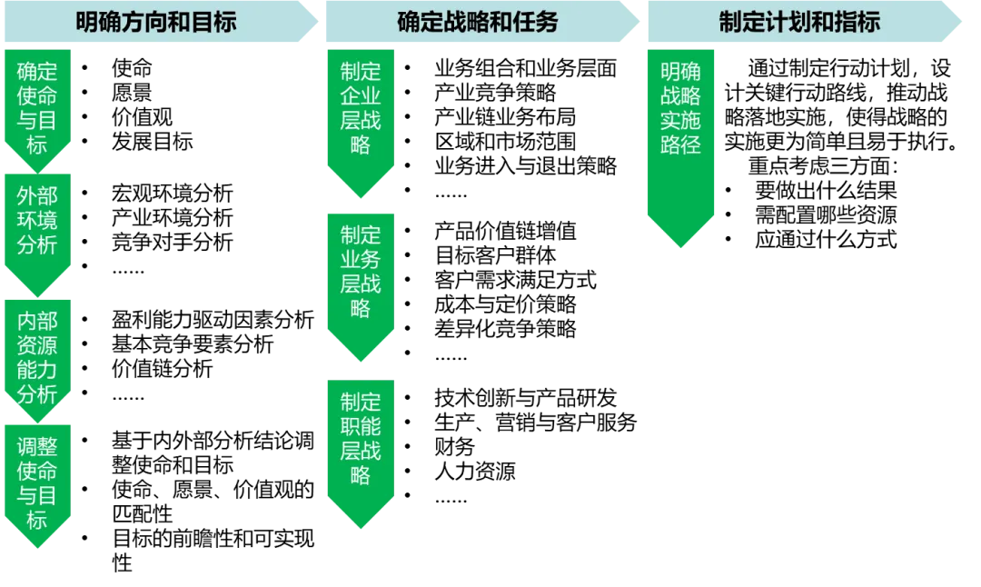 整体来看,企业战略规划的制定分为以下三大步骤: