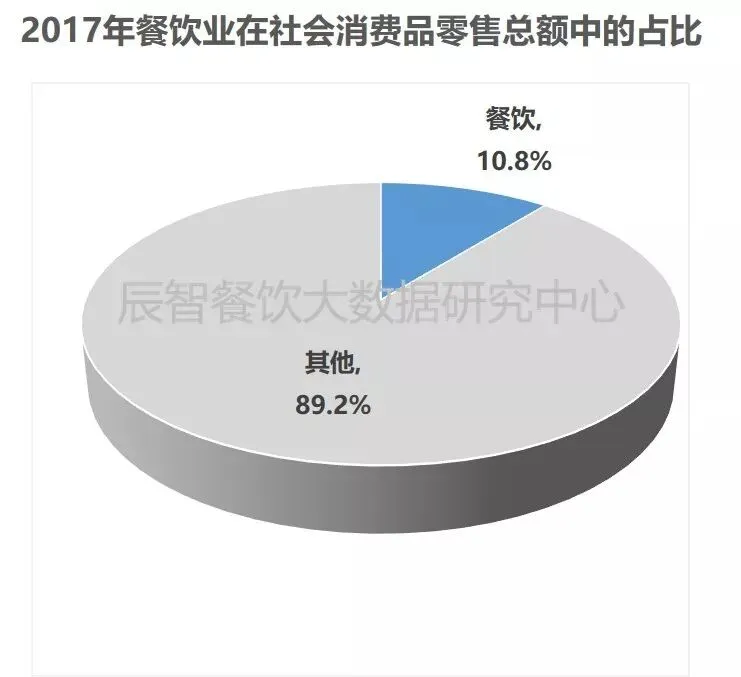 2017年,餐饮业在消费品零售总额中的占比达到10.8%。