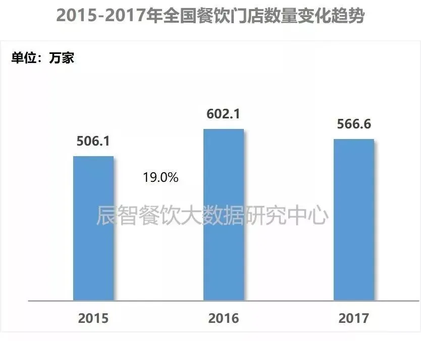 全国餐饮门店数量经过2016年的上涨后在2017年出现下降。