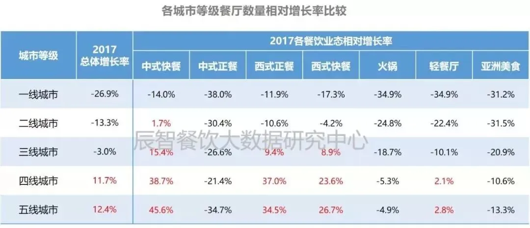 细分品类中,中式快餐、西式正餐和西式快餐在四五线城市出现较大幅度上涨,轻餐厅也在四五线城市稍有上涨。