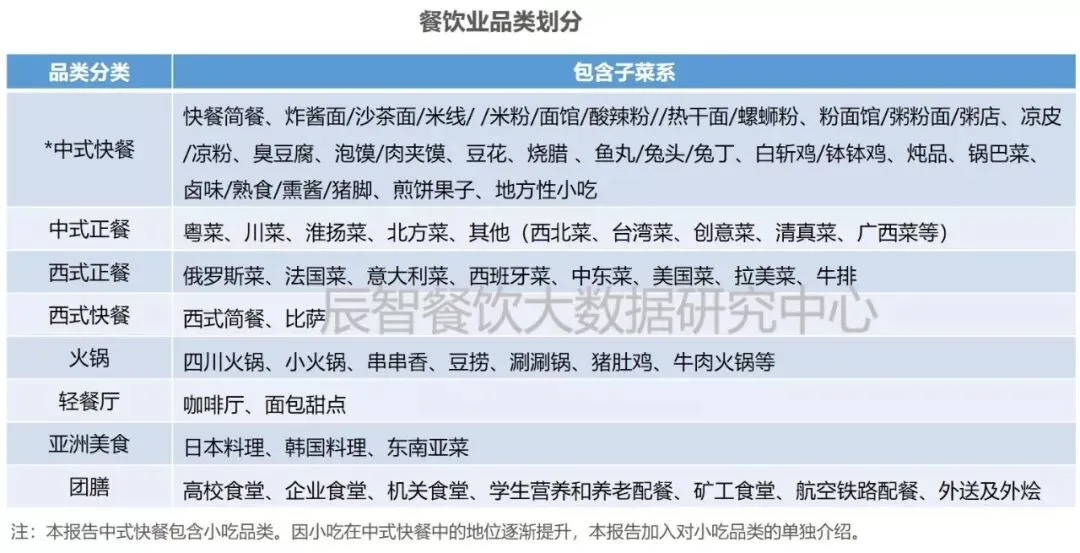 按照餐饮店的特点,辰智科技将餐饮业细分为八个品类,包括中式正餐、中式快餐、西式正餐、西式快餐、火锅、轻餐厅、亚洲美食和团膳。
