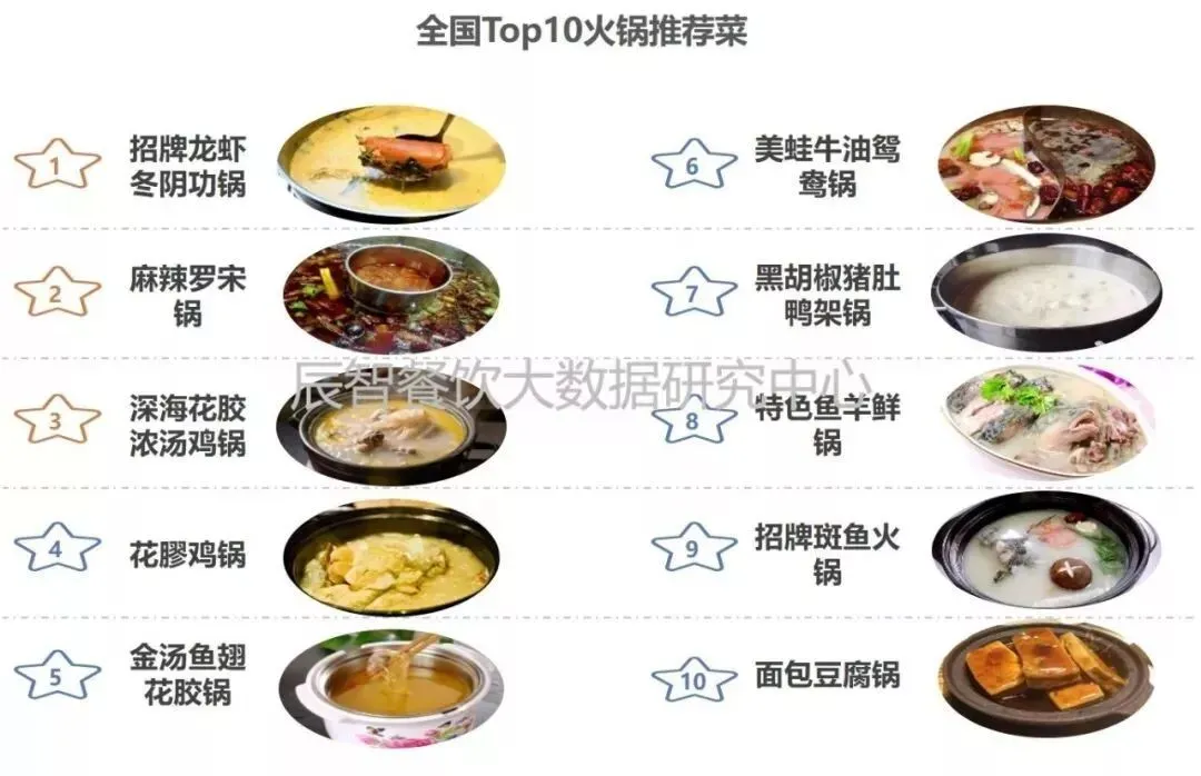 火锅top10推荐菜分别是:招牌龙虾冬阴功锅、麻辣罗宋锅、深海花胶浓汤鸡锅、花膠鸡锅、金汤鱼翅花胶锅、美蛙牛油鸳鸯锅、黑胡椒猪肚鸭架锅、特色鱼羊鲜锅、招牌斑鱼火锅、面包豆腐锅。