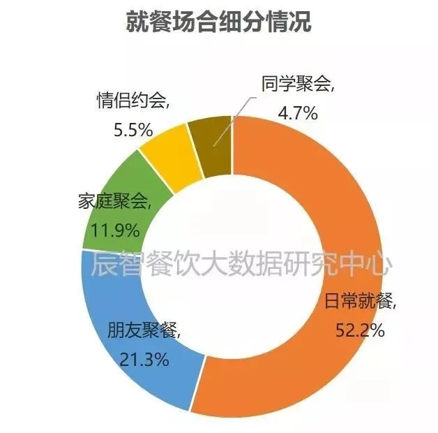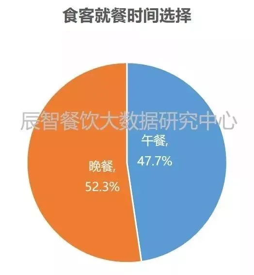 餐饮食客以午餐和晚餐就餐为主,分别占比47.7%和52.3%。