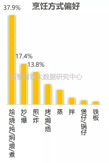 烹饪方式方面,食客较为偏好烩/烧/炖/焖/煨/煮、炒/爆和煎/炸。