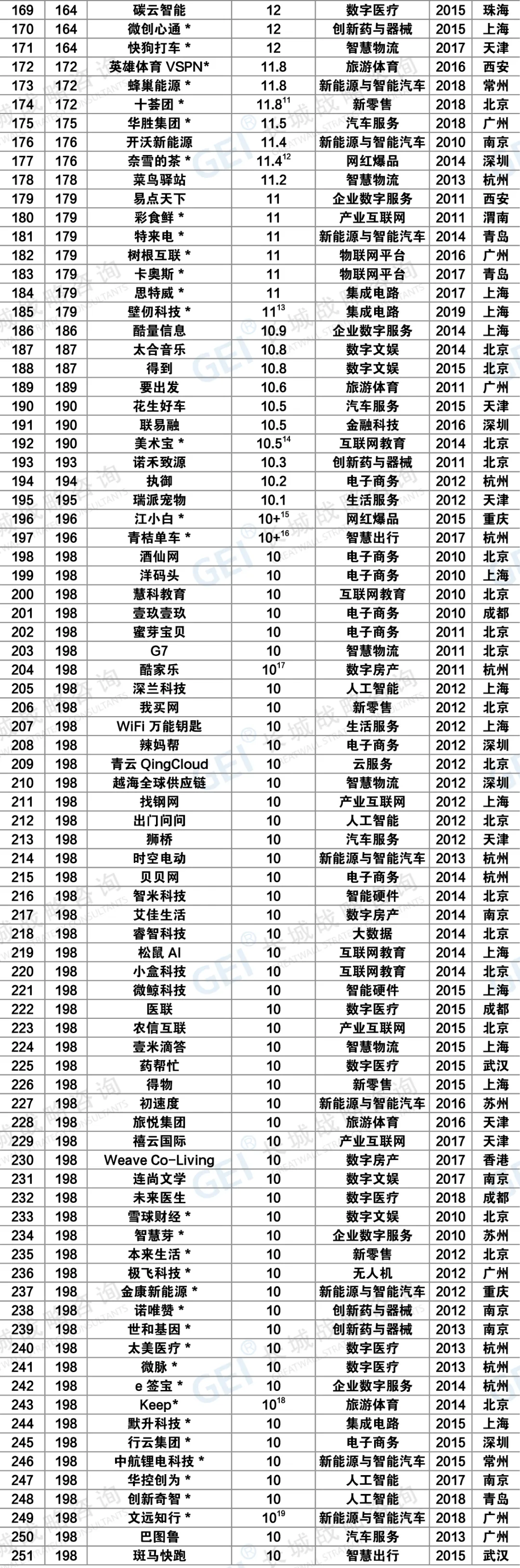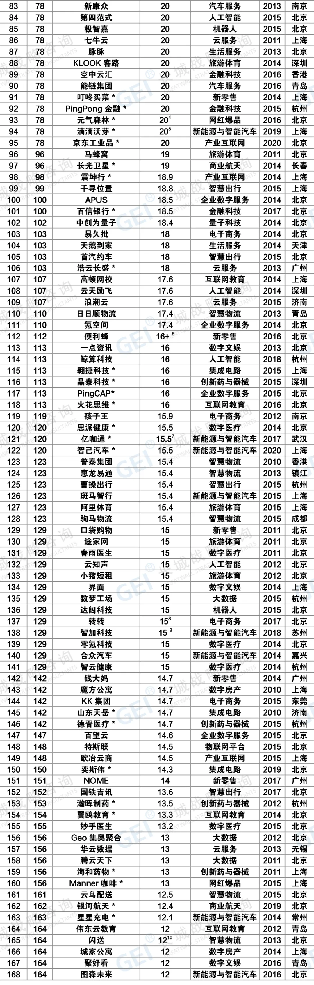 GEI中国独角兽企业标准: