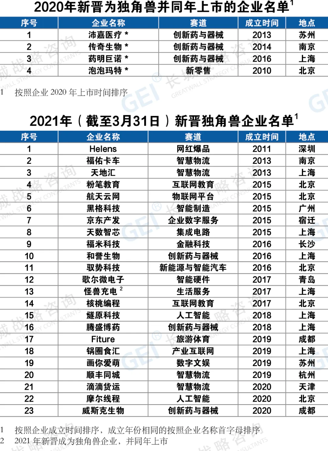 2021年,截至3月31日新晋23家中国独角兽企业。