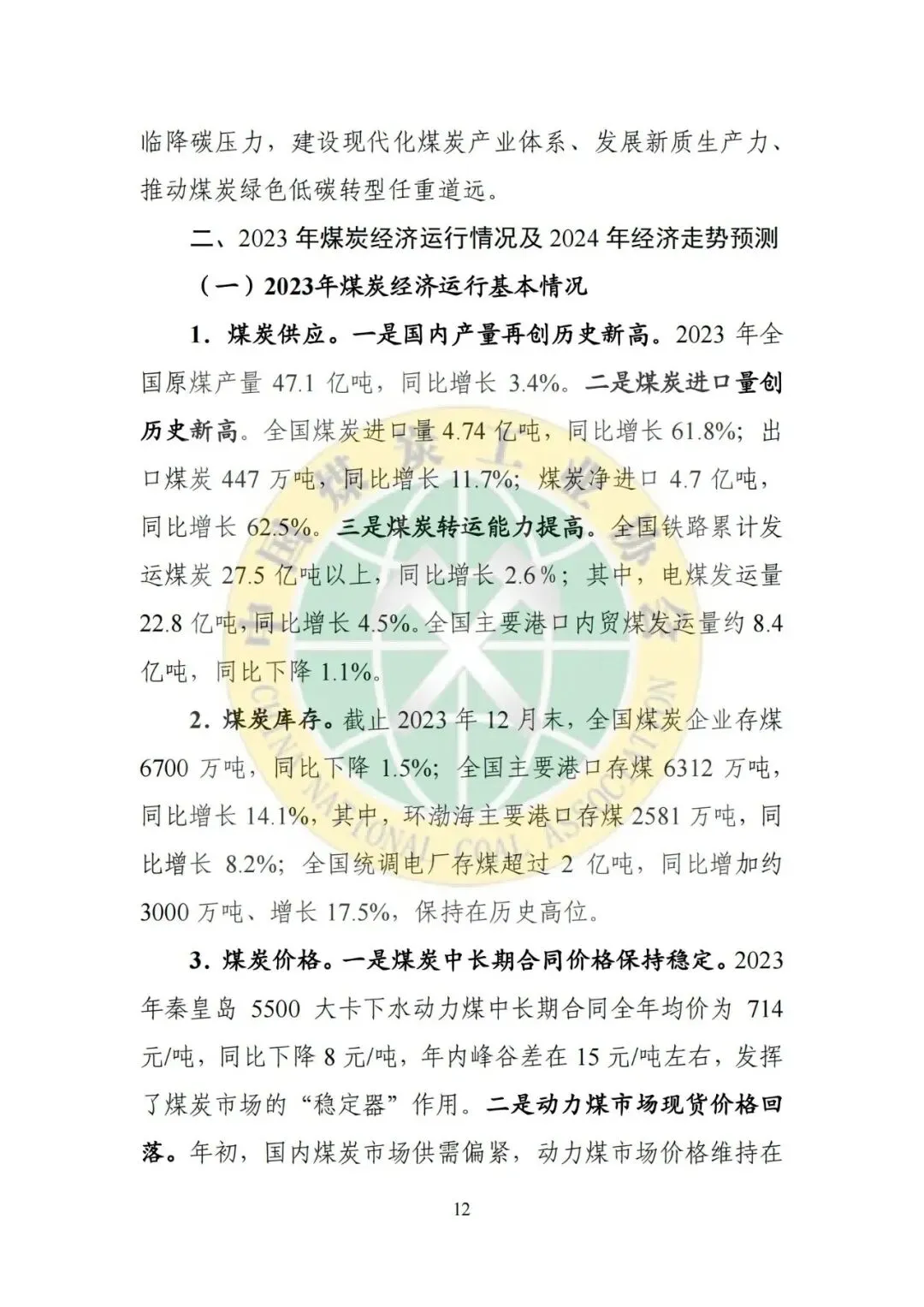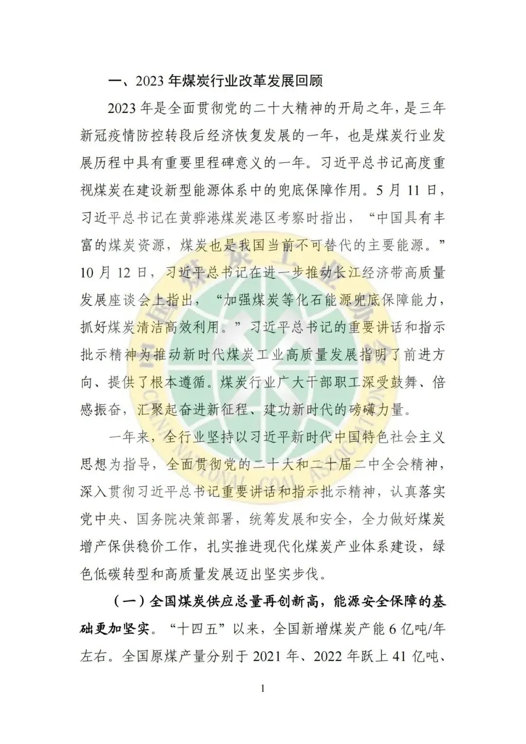 3月28日,中国煤炭工业协会在京发布《2023煤炭行业发展年度报告》(以下简称《报告》),《报告》对2023年煤炭发展状况做出概括,并对2024年的煤炭市场走势进行了预测。