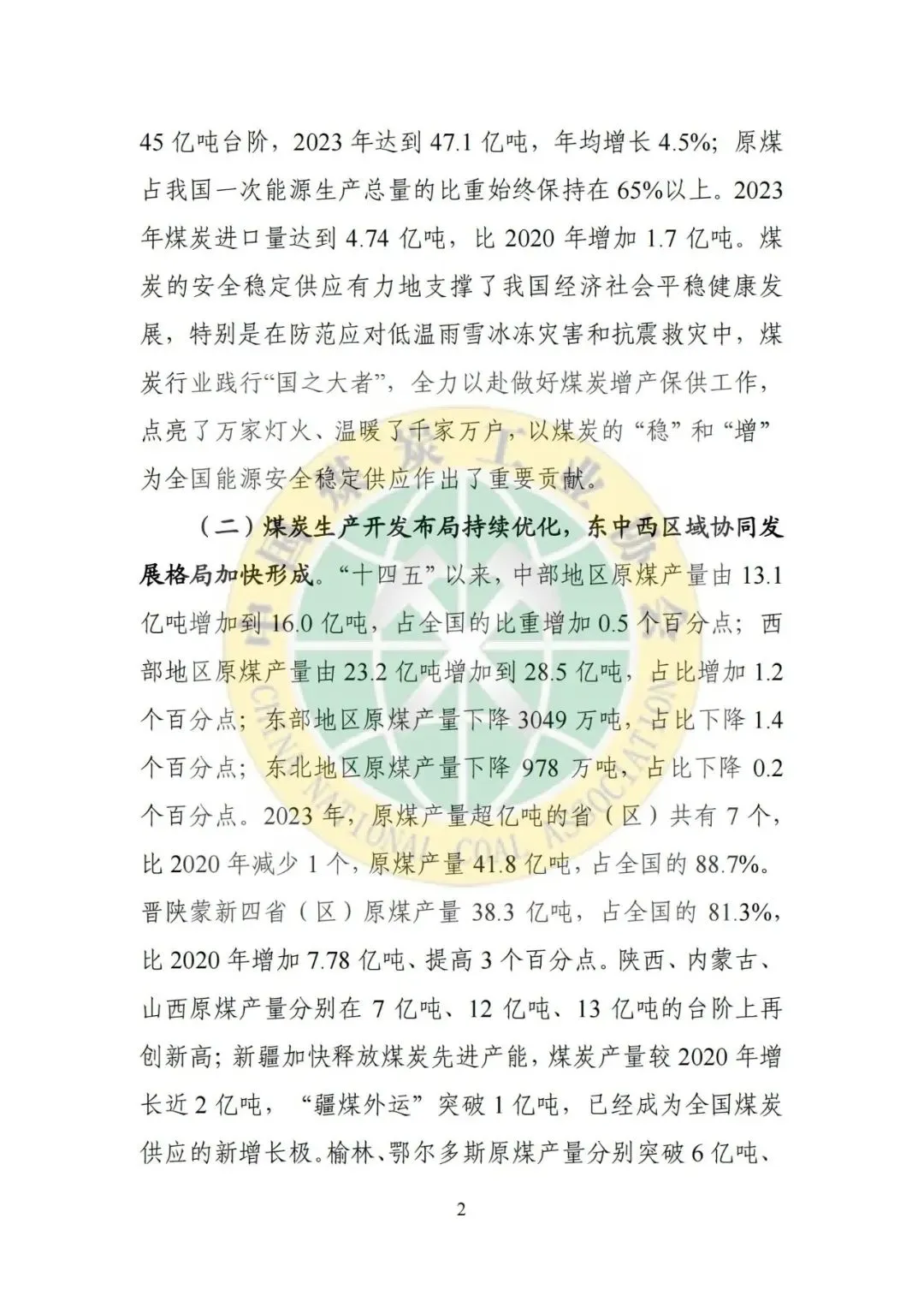 《报告》显示,“十四五”以来,全国新增煤炭产能6亿吨/年左右,2020至2023年期间年均原煤产量增长4.5%,其中2023年达到47.1亿吨。