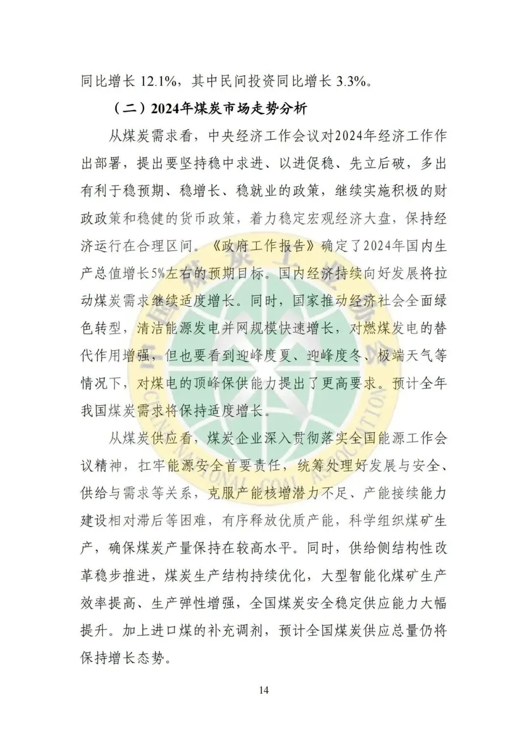 《报告》预测,2024年全国煤炭供应体系质量提升、应急保供能力增强,煤炭市场供需将保持基本稳定。尽管如此,也可能因为出现极端天气、突发事件、新能源出力等不确定性因素,导致出现区域性、时段性或者品种性的煤炭供需错配的情况。