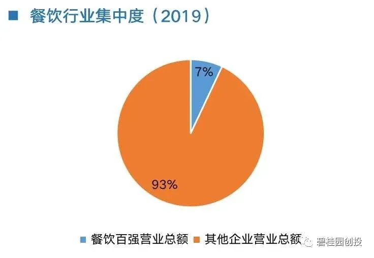国内餐饮市场分散,行业集中度低,呈现典型的“大行业、小公司”局面。2019年餐饮百强营业总额仅占行业7%。2018年,中国餐饮品牌CR5仅约2%,对比发达国家存在一定差距。