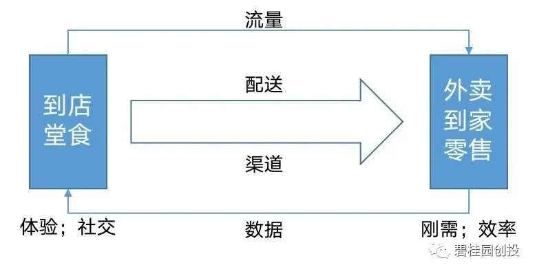 在原有框架里,餐饮经营效率的提升有限,升级商业模式、打破效率限制成为必然选择。线上+线下融合的形式下,业务全面覆盖“堂食+外卖+零售”多种消费场景,将餐饮体验、食品食材销售融为一体。一方面,线下良好体验可以为线上外卖和零售导流,另一方面,线上业务可以为线下业务提供流量支持。