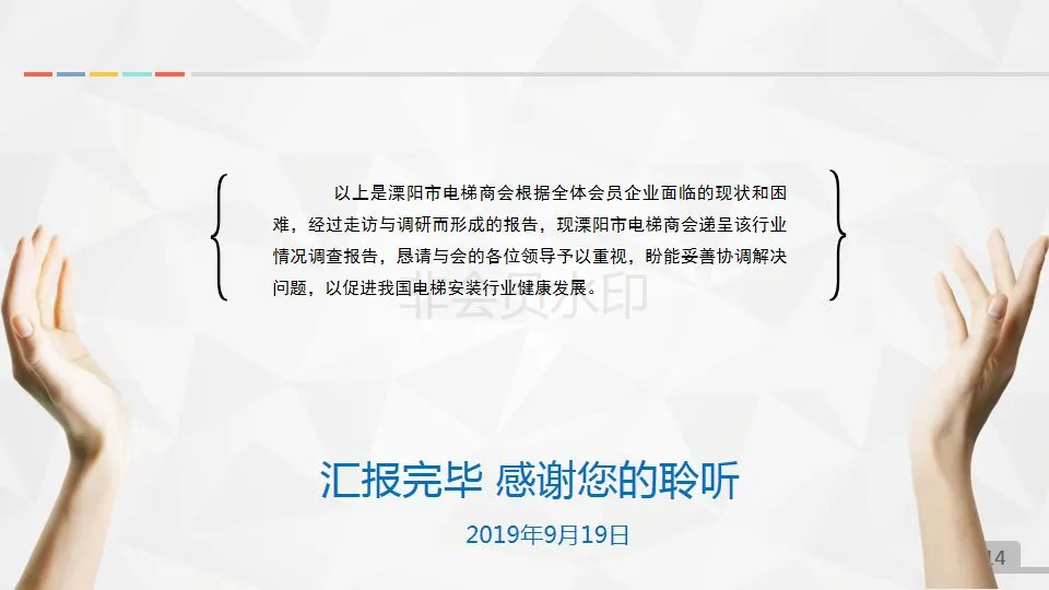 以上文字是根据溧阳市电梯商会秘书长戴九大先生的发言PPT整理而成,以下为PPT原文: