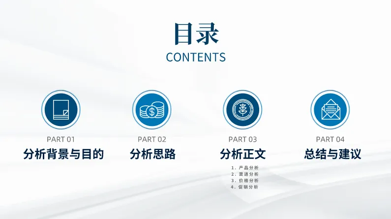 开篇部分包括标题页、目录和前言;正文主要包括具体分析过程和结果;结尾主要是结论、建议和附录。下面将对这几个部分进行介绍。