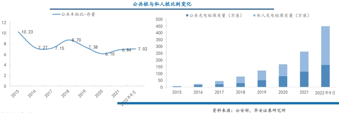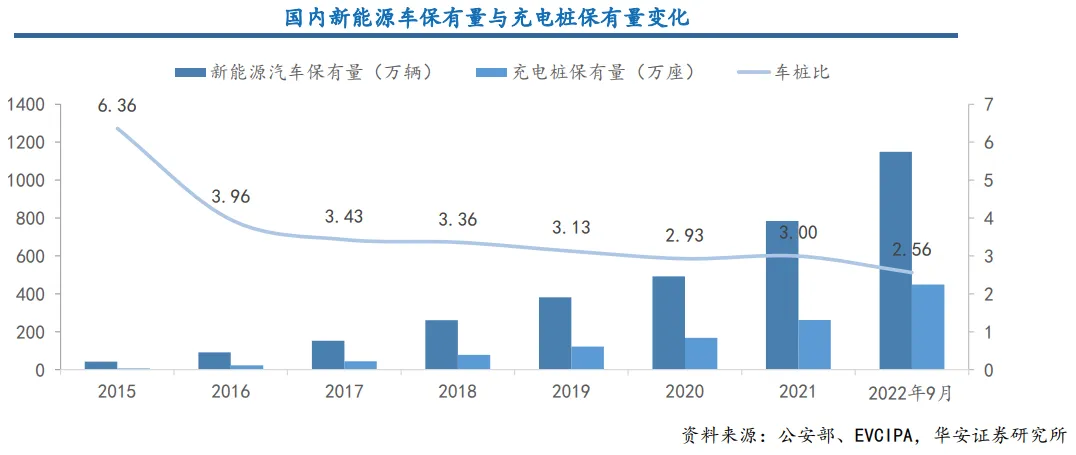 ❸ 国内充电桩布局快速,近年来车桩比持续下降,充电桩建设由补贴驱动转向市场驱动