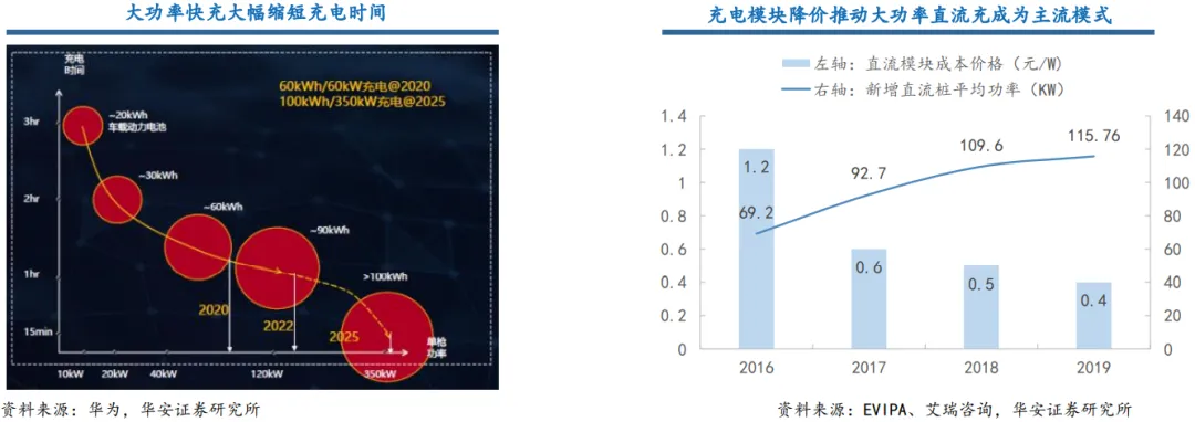 ❼ 趋势一:大功率快充大幅缩短充电时间,充电模块降价推动大功率直流充成为主流模式