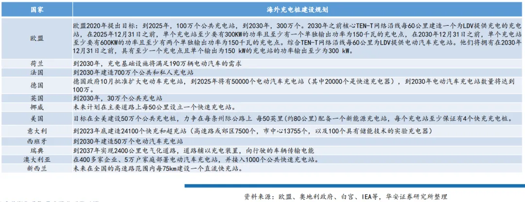 全球各国在碳中和目标驱动下,海外各国通过明确充电桩建设规划,给予激励补贴政策的方式加速市场建设。