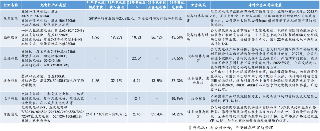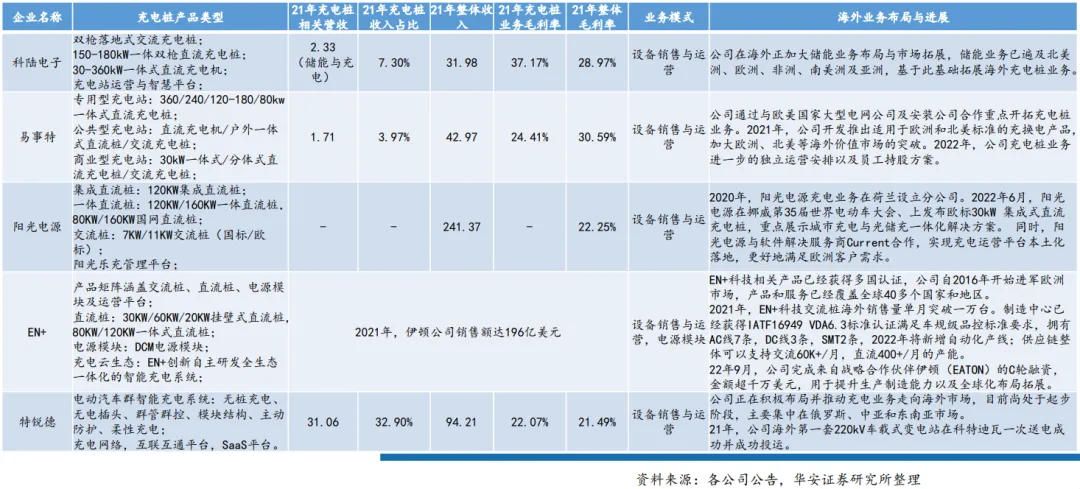 伴随国内以华为、英飞源为代表的充电模块厂商在高功率端技术不断突破,海外充电桩市场需求在政策激励后机会涌现,国内充电桩设备与运营商加速出海进程,通过与海外头部企业合作、利用海外市场渠道优势、海外收并购等形式布局海外市场。